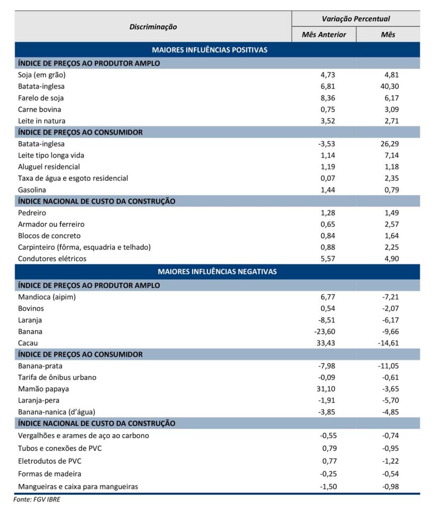 Confira os itens que mais influenciaram o IGP em junho de 2024 na tabela abaixo.