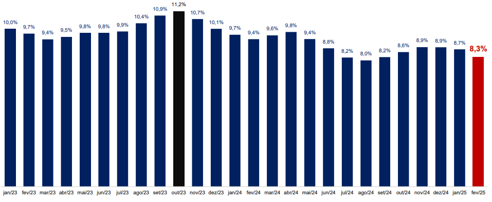 O número de famílias inadimplentes em São Paulo registrou uma queda em fevereiro, segundo dados coletados pela Pesquisa do Endividamento e Inadimplência do Consumidor (PEIC) da Federação do Comércio de Bens, Serviços e Turismo do Estado de São Paulo (FecomercioSP). Com esse desempenho, o indicador alcançou o mesmo nível de setembro do ano passado, com 19%. Os motivos apontados para essa melhora foram a redução do desemprego e o aumento da massa de renda da população.