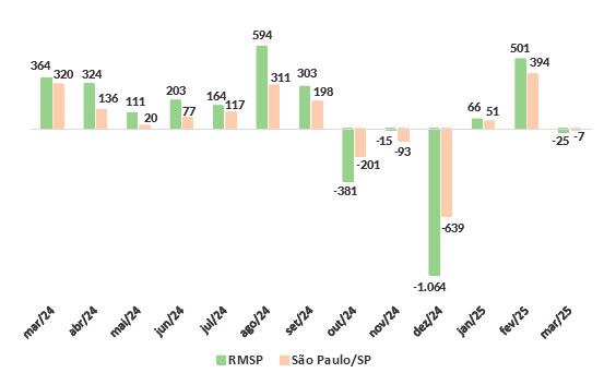 Jaime lembra que ao se debruçar sobre os dados de fevereiro passado, já era possível observar que os bons resultados obtidos não iriam ser repetidos. “Não apenas isso aconteceu, como se viu em março uma tímida retração da empregabilidade, podendo ainda ser considerada uma estabilidade”, avalia. Ele ressalta que tais números arrefecidos acompanharam a tendência nacional para este terceiro mês do ano, e em geral nos setores da economia brasileira. “Desde o fim de 2024 nota-se uma desaceleração do ritmo de expansão do mercado de trabalho formal, o que nos traz à tona que realmente os fortes números do último fevereiro foram um ‘ponto fora da curva’ e que a realidade de 2025 é contarmos com este ritmo menor de geração de vagas”.