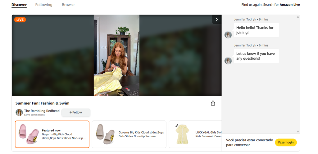 - O que faz bem: A Amazon transformou lives commerce em um recurso fixo, com criadores de conteúdo fazendo demonstrações de produtos em tempo real.