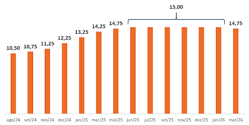 O Comitê de Política Monetária (COPOM) decidiu reduzir a taxa Selic em 0,25 ponto percentual nesta última reunião de março, levando a taxa para 14,75%, e marcando o início de um ciclo de flexibilização monetária no país. A moderada medida ocorre após um período prolongado de juro em elevação, e mais recentemente, mantido em 15% ao ano, refletindo cuidados com o ritmo da desaceleração da inflação doméstica. Essa evidenciada cautela por parte do Banco Central ocorre diante de incertezas no cenário internacional, especialmente relacionadas aos possíveis impactos da guerra no Irã (e Oriente Médio) sobre os preços de combustíveis.