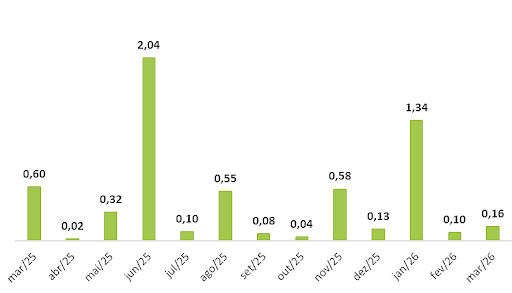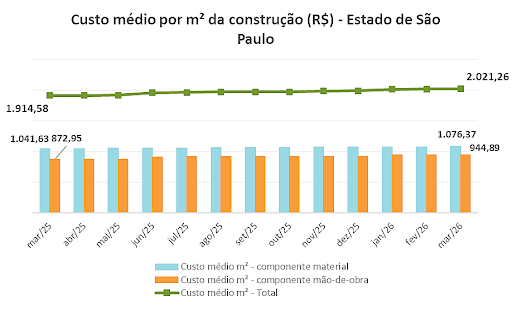 No ano, o indicador mostra avanço geral de 1,60% e, em doze meses, de 5,57%. Este último percentual, inclusive, representa um acréscimo de R$106,68 em relação a março de 2025. Destes, R$34,74 vieram do aumento médio com os materiais de construção e R$71,94, com mão de obra.