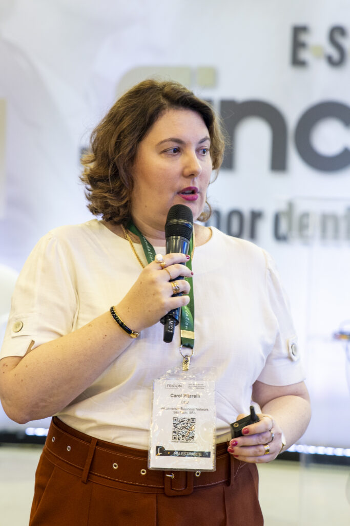 Carol Pitarelli (foto), responsável pela palestra “Vendas Inteligentes: Dados, IA e Gestão no Novo Varejo da Construção”, em 8 de abril, destacou a participação ativa dos presentes. “Ver todos os lugares ocupados, um público extremamente participativo, fazendo perguntas, anotando cada insight… foi realmente emocionante”, afirma. Ela ressalta ainda que a abordagem sobre uso de CRM e inteligência artificial evidenciou ganhos diretos em eficiência e resultados. “Tecnologia não é sobre futuro… é sobre resultado agora”, completa.